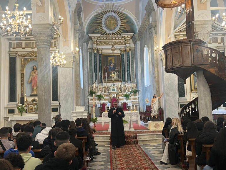 Εκπαιδευτική επίσκεψη της Γ’ Γυμνασίου της Λεοντείου Σχολής Αθηνών στον Καθεδρικό Ναό Παναγίας του Ροδαρίου και το Αποστολικό Κέντρο «Πίστη και Πολιτισμός» στην Ξυνάρα Τήνου