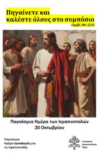ΜΗΝΥΜΑ ΤΟΥ ΑΓΙΟΥ ΠΑΤΕΡΑ ΦΡΑΓΚΙΣΚΟΥΓΙΑ ΤΗΝ 98η ΠΑΓΚΟΣΜΙΑ ΗΜΕΡΑ ΙΕΡΑΠΟΣΤΟΛΩΝ 2024 20 Οκτωβρίου 2024Πηγαίνετε και καλέστε όλους στο συμπόσιο (πρβλ. Μτ 22,9) Αγαπητοί αδελφοί