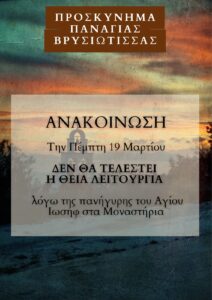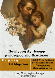 ΠΑΝΗΓΥΡΙΣΕ Ο ΑΓΙΟΣ ΙΩΣΗΦ ΣΤΑ ΜΟΝΑΣΤΗΡΙΑ Η Θεία Πρόνοια πιστεύουμε ότι ενήργησε ώστε ο σεβ/τος Νικόλαος πρώην Τήνου να αναγορεύσει τον ενοριακό ναό των Μοναστηρίων