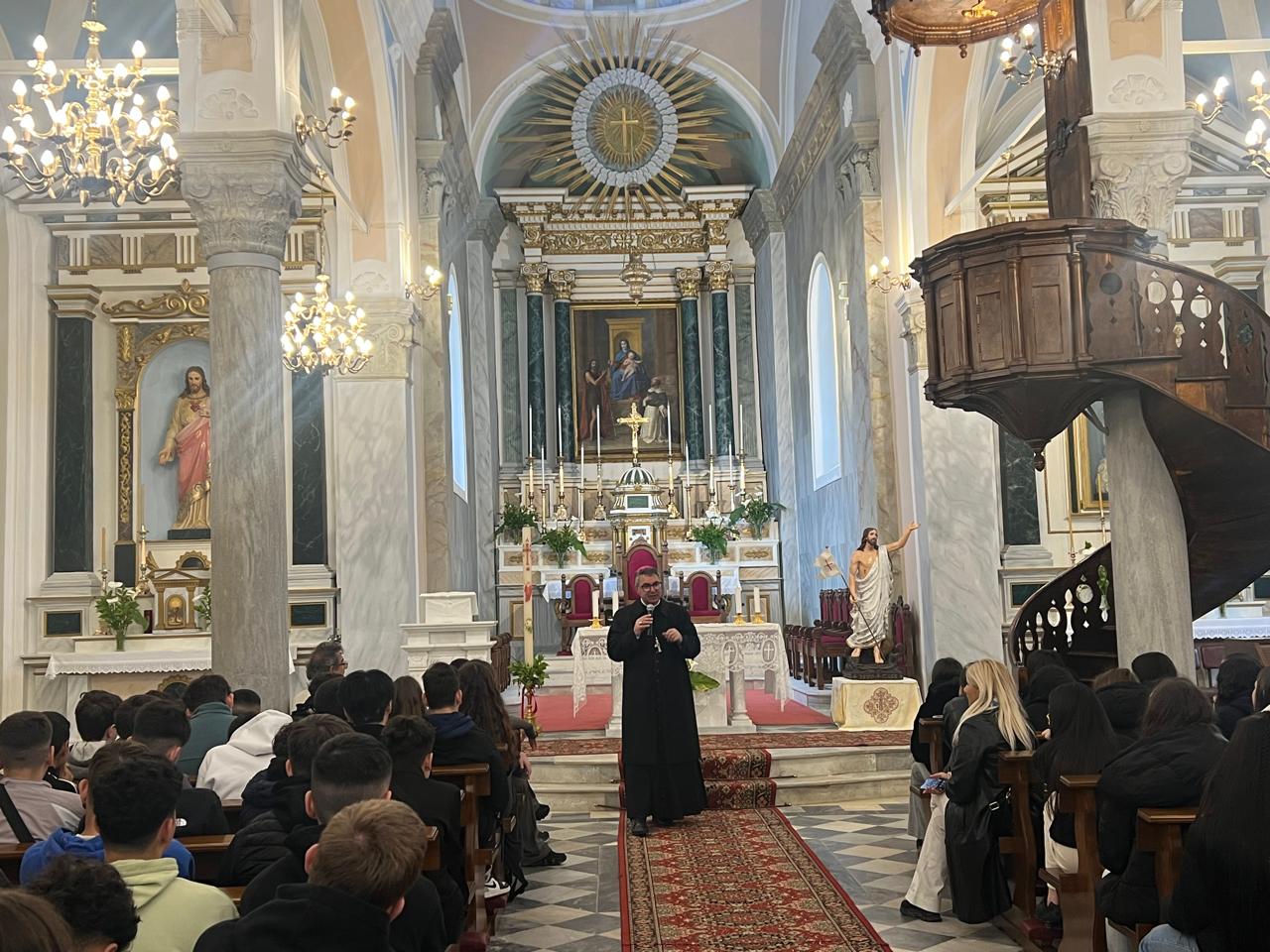Εκ μέρους της ενοριακής κοινότητας προσφέρθηκαν λουλούδια στο Γενικό Ηγούμενο και εκ μέρους του εφημερίου π. Φερνάνδο δυο και υπεφημερίου π. Ιωσήφ συμβολικά  δώρα που υπενθυμίζουν την  Ελλάδα.