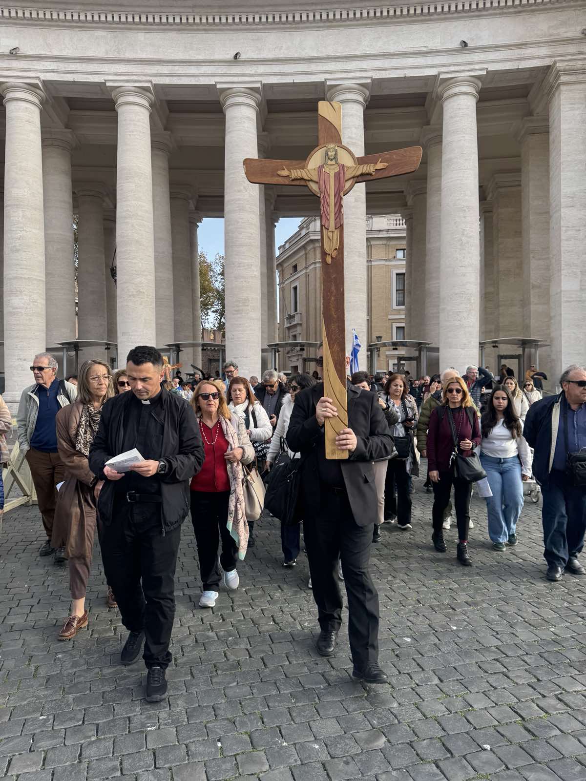 Ο Αρχιεπίσκοπος π. Ιωσήφ συνεπικουρούμενος απ’ τον π. Γιάννη Σκλάβο συνοδεύει πιστούς από την Τήνο και την Νάξο, σ’ ένα προσκύνημα Ελπίδας στην αιώνια πόλη και ειδικότερα στον Άγιο Πέτρο.