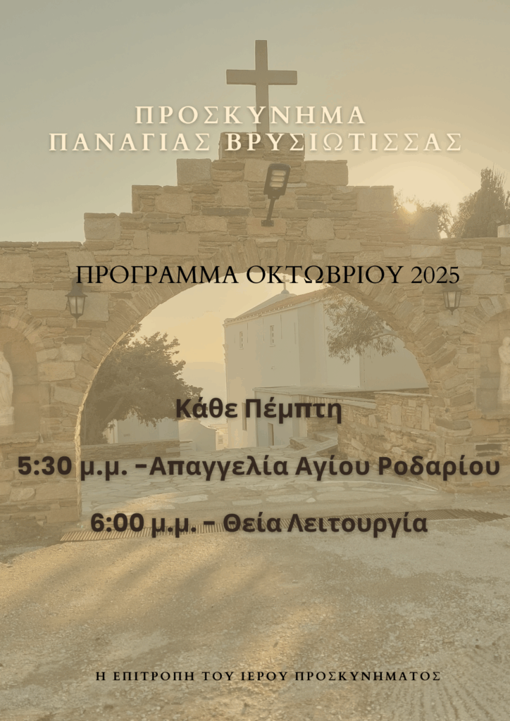 Πρόγραμμα του Προσκυνήματος της Παναγίας Βρυσιώτισσας – Οκτώβριος 2025