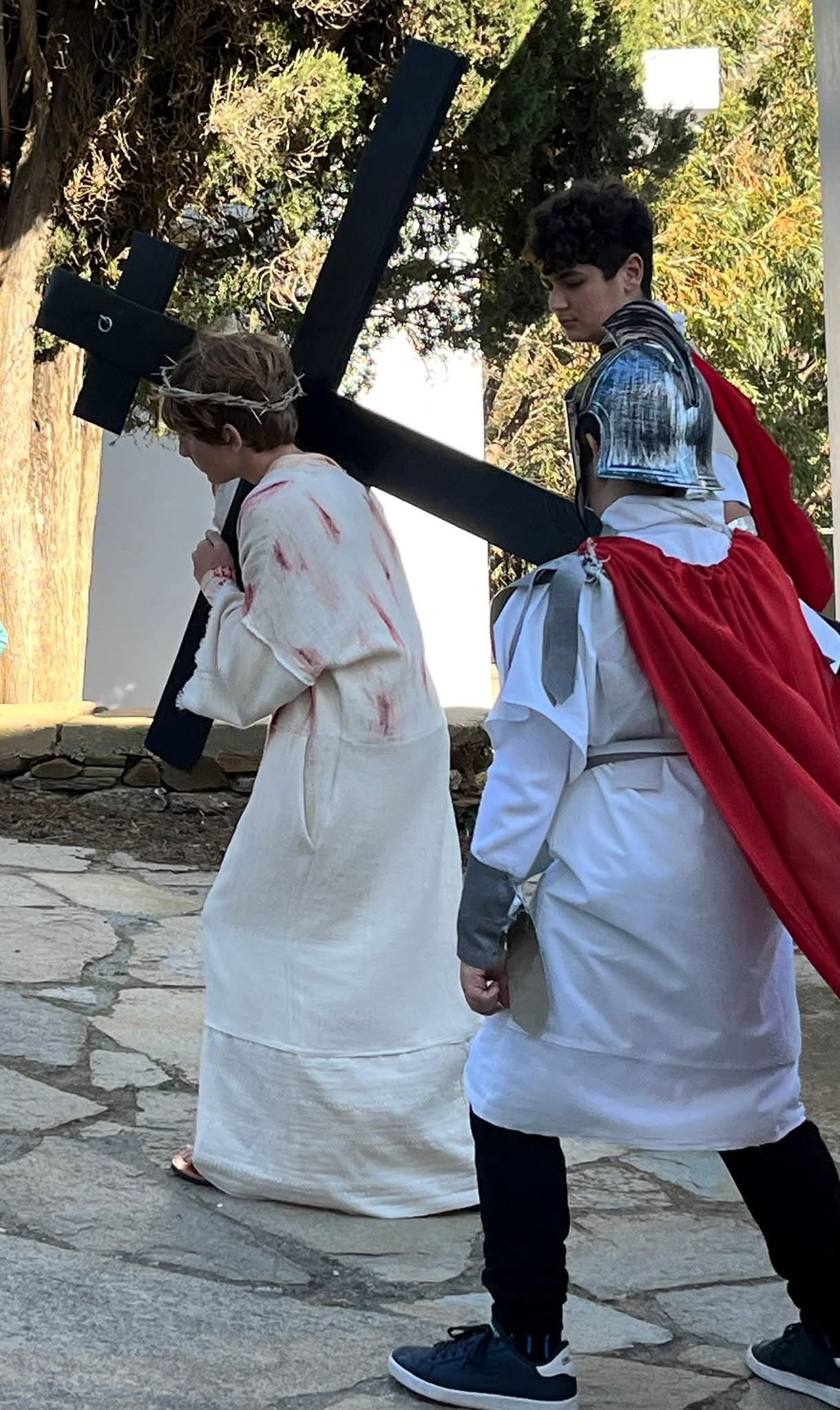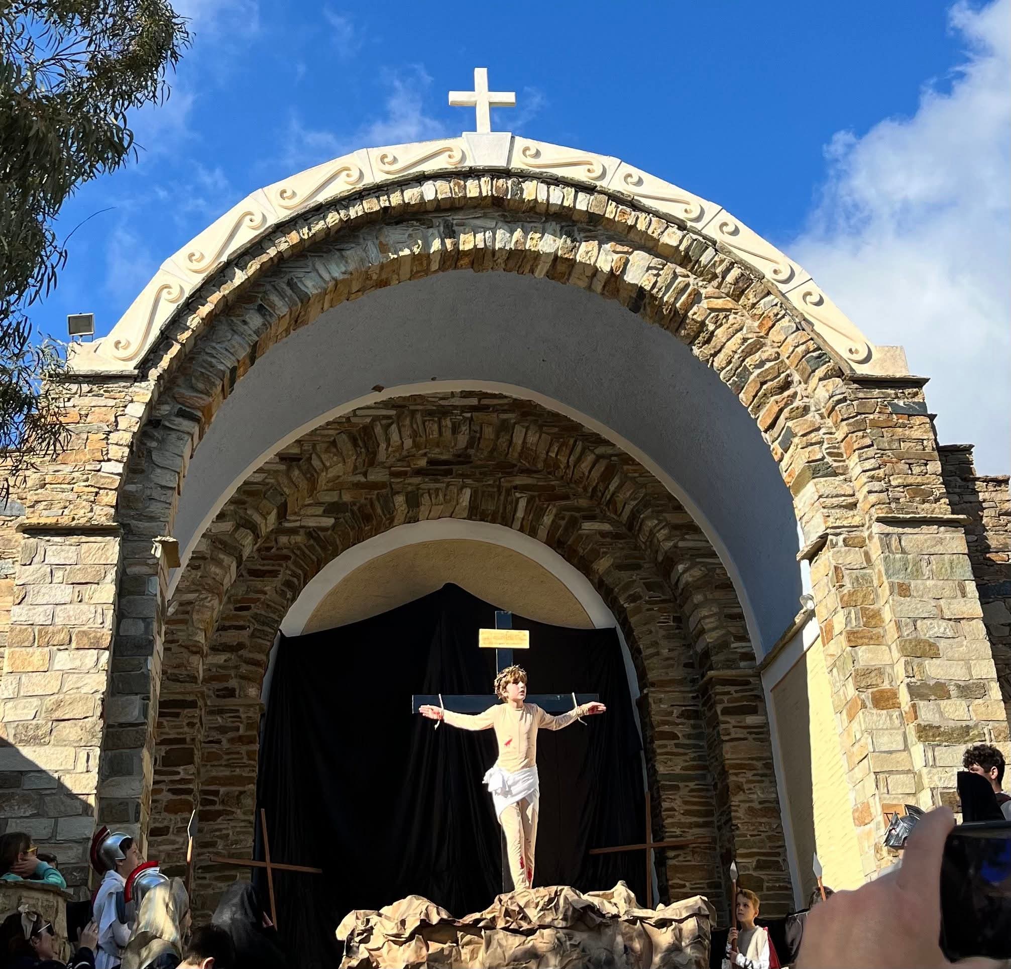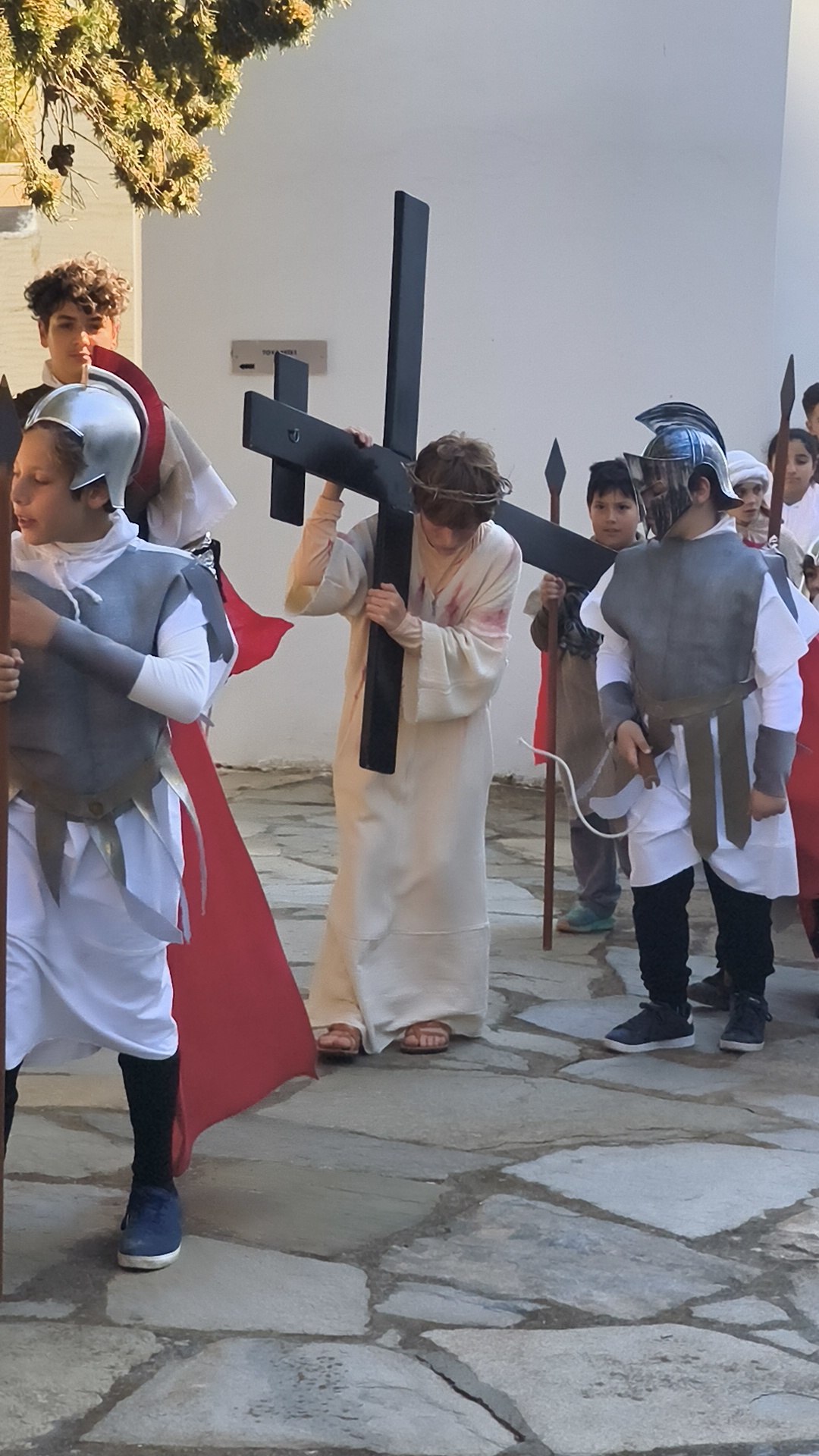 Έντονες στιγμές κατάνυξης γεμάτες συγκίνηση, σιωπή και ιερότητα, έζησαν όσοι παραβρέθηκαν το απόγευμα της Μεγάλης Δευτέρας στο Προσκυνηματικό χώρο της Παναγίας του Βρυσιού. Τα παιδία των κατηχητικών κέντρων της Καθολικής Αρχιεπισκοπής Τήνου, μας μετέφεραν στην Ιερουσαλήμ, εκεί που εξελίχθηκε το Θείο δράμα… Από τη σύλληψη στον κήπο των Ελαιών ως την Ανάσταση!